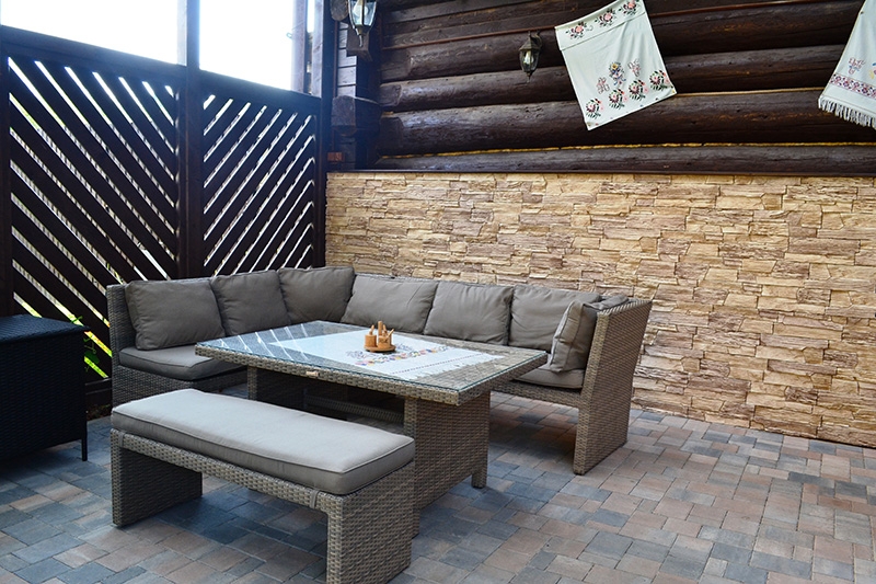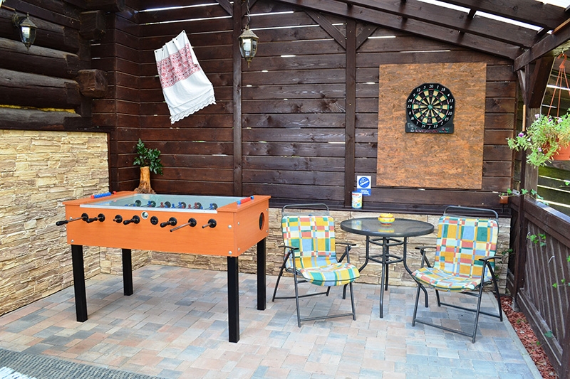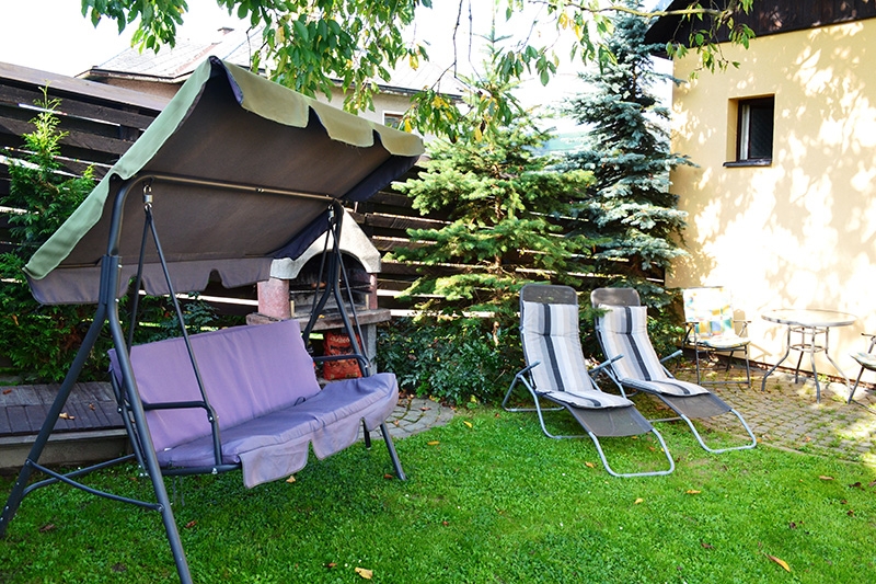 Vybavenie exteriér: terasa, prístrešok s lavicami, kozub, ohnisko, hojdačky